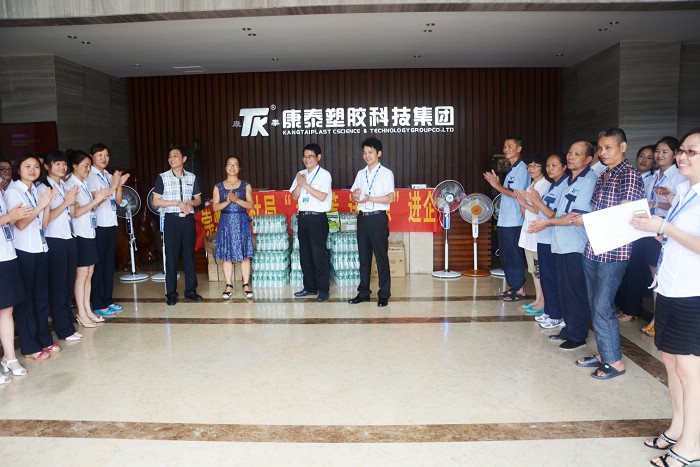 8月7日下午,崇州市人力資源和社會(huì)保障局副局長(zhǎng)、工會(huì)主席李茂清帶領(lǐng)局“送清涼”慰問(wèn)組,來(lái)到康泰塑膠科技集團(tuán)有限公司,工會(huì)主席吳彬及人事行政中心呂旭梅經(jīng)理接待了慰問(wèn)組。人社部門為公司職工送上了電風(fēng)扇、礦泉水、和防暑物品,并將有關(guān)勞動(dòng)安全、工資待遇等內(nèi)容的人社政策宣傳資料送到職工手中,使職工進(jìn)一步了解有關(guān)政策法規(guī),依法主動(dòng)保護(hù)自身合法權(quán)益。