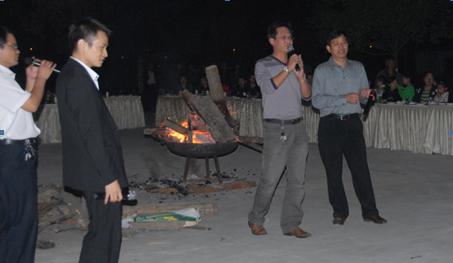 晚宴后,大家紛紛來到戶外,圍著篝火舉杯歡唱,在主持人幽默詼諧的帶領下,參與互動的員工熱情高昂?;顒右恢背掷m(xù)到晚上10點,大家仍然意猶未盡。