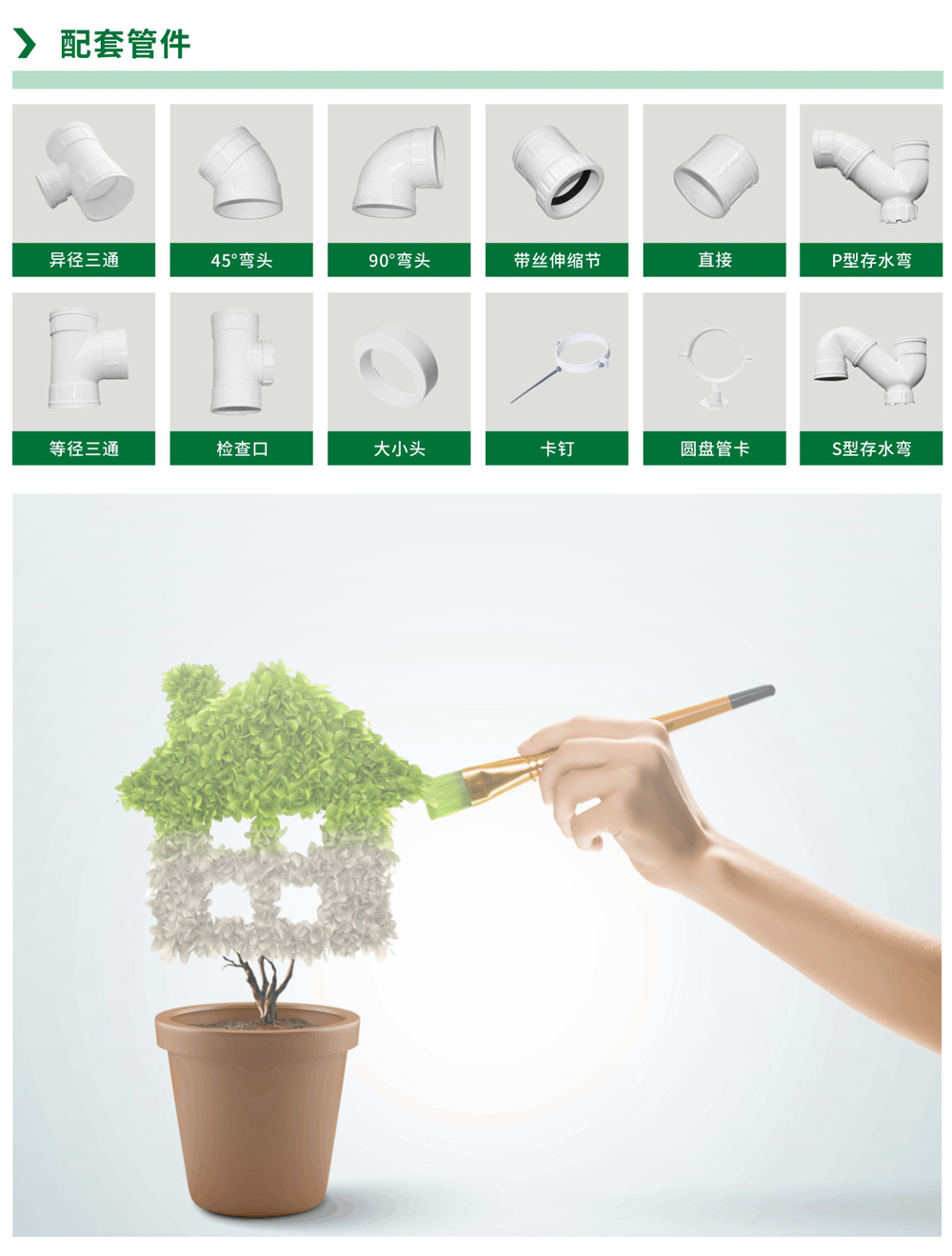 生產(chǎn)標(biāo)準(zhǔn):GB/T5836.1-2006(管材) GB/T5836.2-2006(管件)
