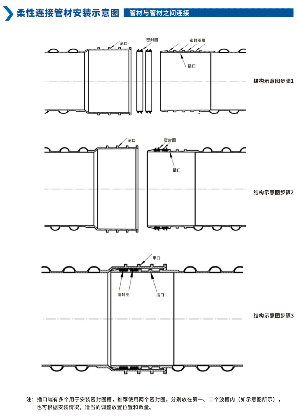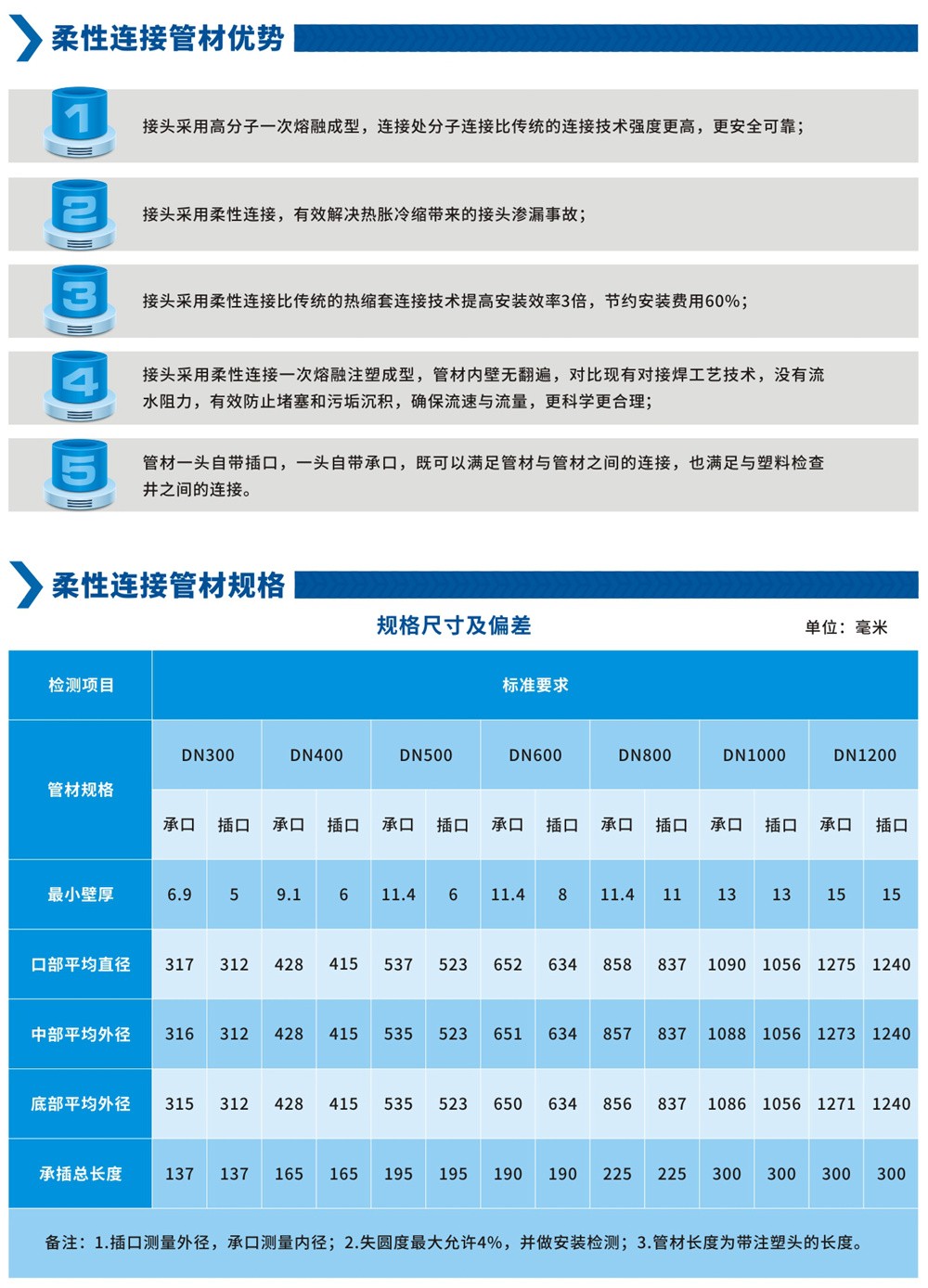 高分子一次熔融注塑成型PE鋼帶增強(qiáng)柔性連接管材: